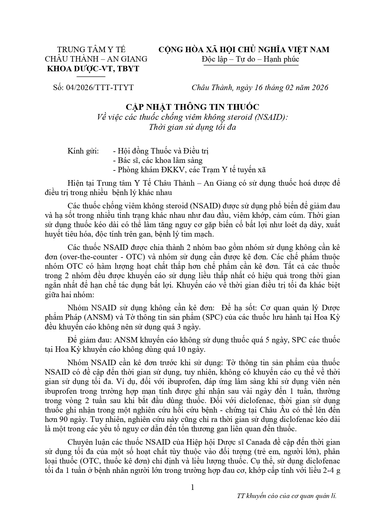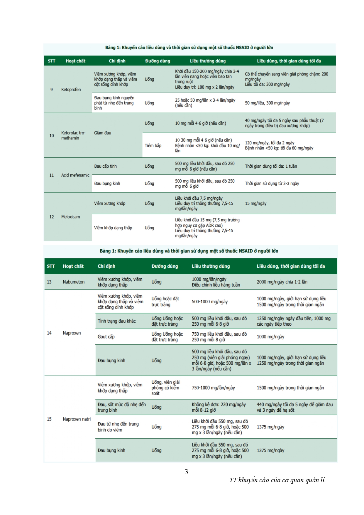 CẬP NHẬT THÔNG TIN THUỐC CHỐNG VIÊM KHÔNG STEROID ( NSAID) Ngày đăng: 11/03/2026 - 14:55 Chia sẻ: | In bài viết