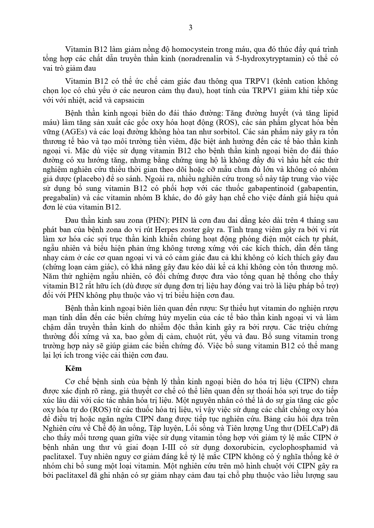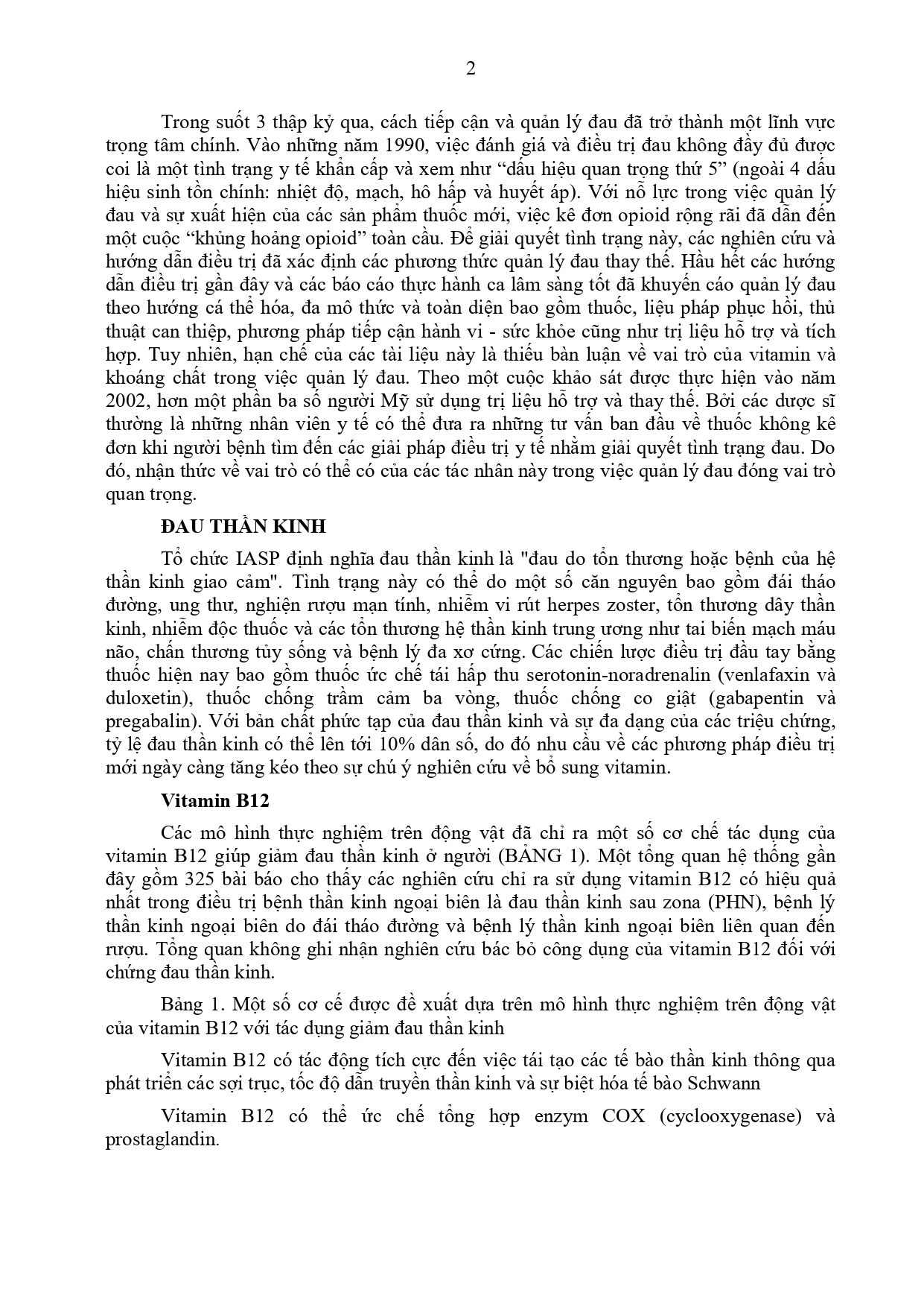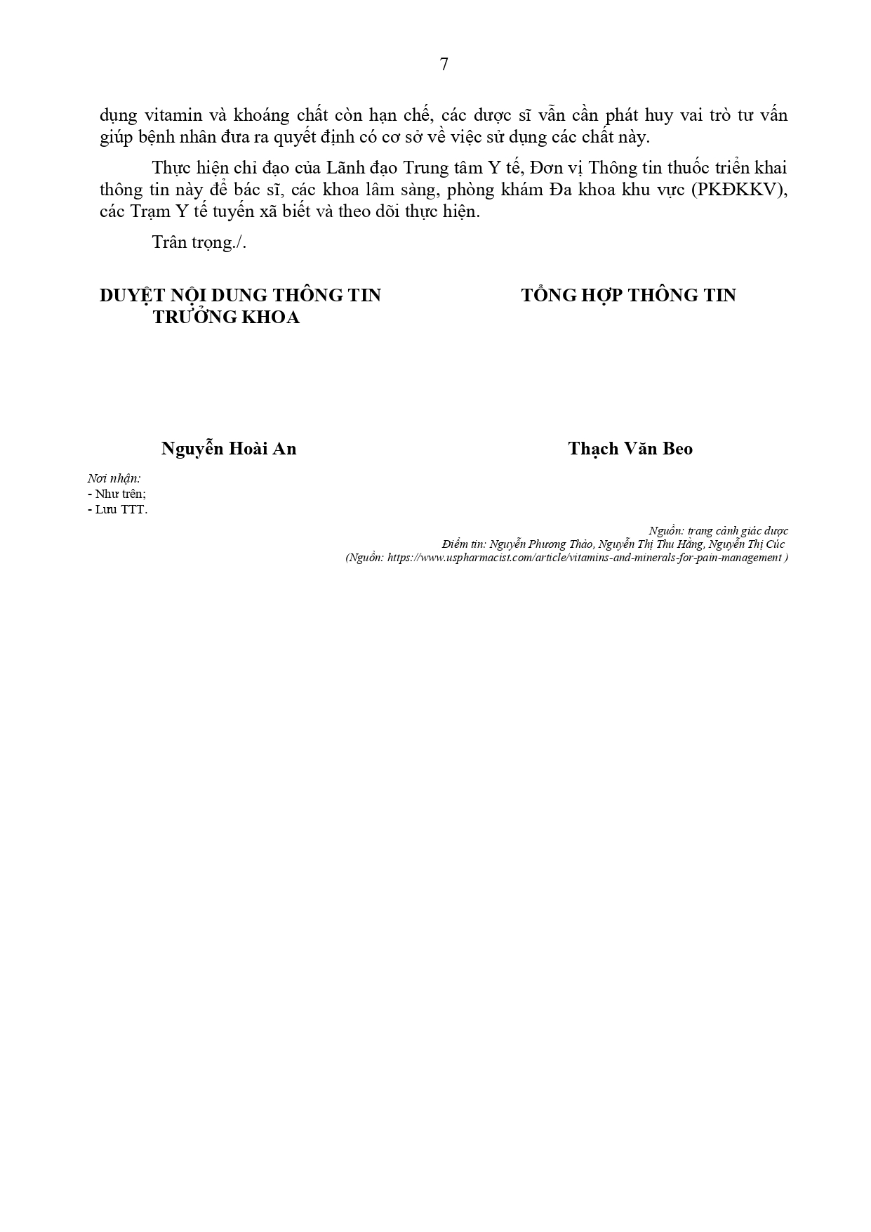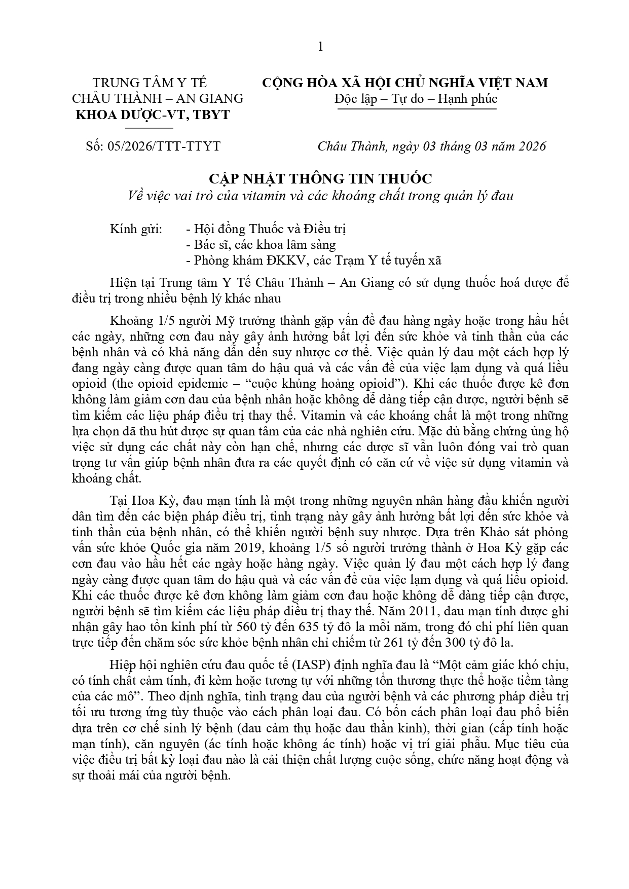 CẬP NHẬT THÔNG TIN THUỐC VAI TRÒ CỦA VITAMIN VÀ CÁC KHOÁNG CHẤT TRONG QUẢN LÝ ĐAU Ngày đăng: 11/03/2026 - 14:57 Chia sẻ: | In bài viết