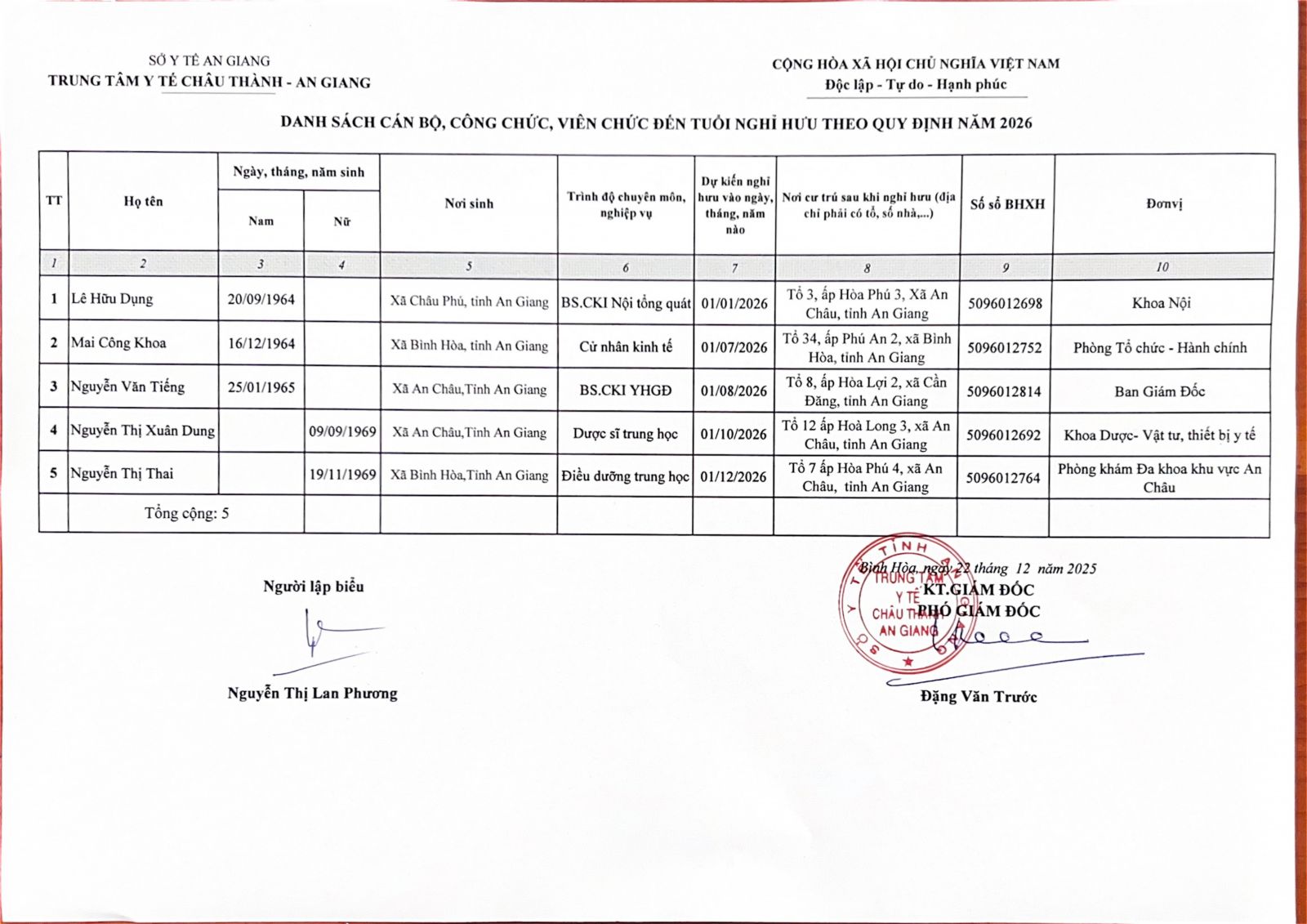 DANH SÁCH CÁN BỘ, CÔNG CHỨC, VIÊN CHỨC ĐẾN TUỔI NGHỈ HƯU THEO QUY ĐỊNH NĂM 2026 Ngày đăng: 27/02/2026 - 10:07 Chia sẻ: | In bài viết
