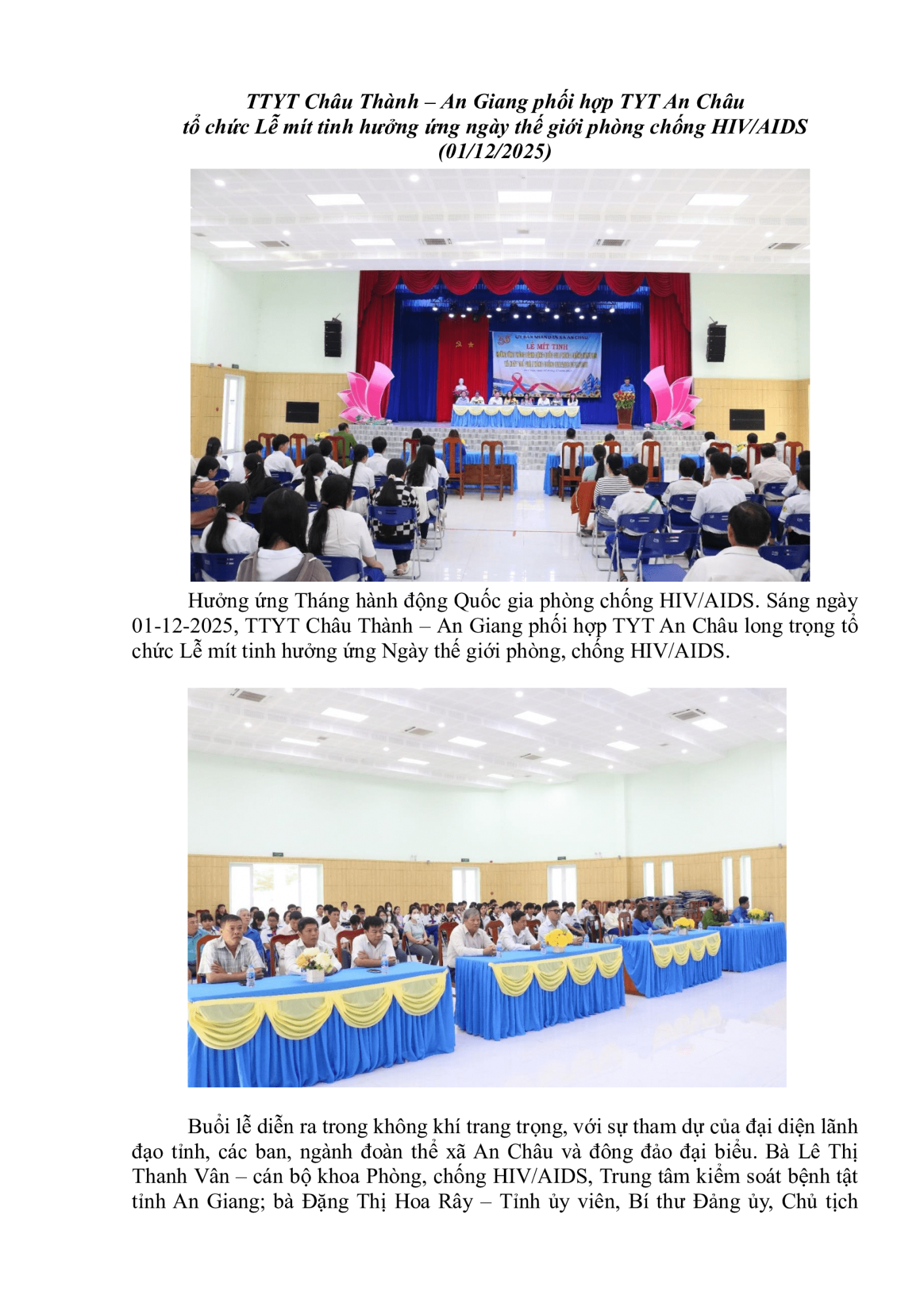 TTYT Châu Thành – An Giang phối hợp TYT An Châu tổ chức Lễ mít tinh hưởng ứng ngày thế giới phòng chống HIV/AIDS (01/12/2025)