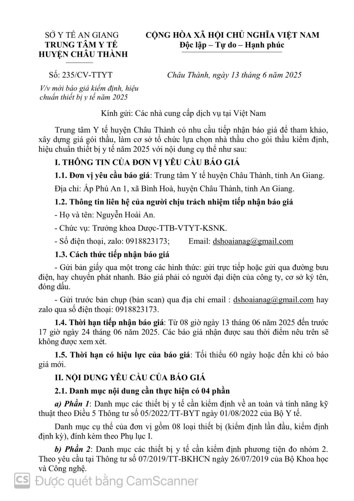 TẢI FILE DOWNLOAD TẠI ĐÂY: 1. CV số 235-TTYT (13.06.2025)_Mời báo giá DV kiểm định hiệu chuẩn TBYT 2025.pdf 2. Mẫu bảng báo giá theo CV số 235-TTYT (13.06.2025).docx